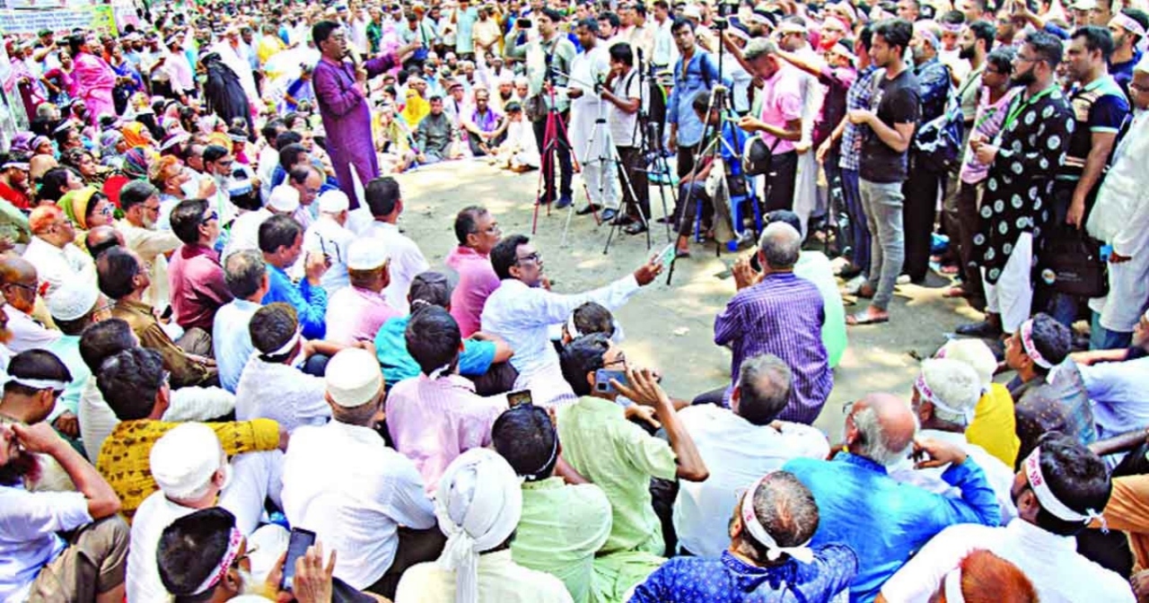 ঢাকা: তিন দফা দাবিতে আন্দোলন চালিয়ে যাচ্ছেন শিক্ষা জাতীয়করণ প্রত্যাশী জোটের শিক্ষকরা। গতকাল বৃহস্পতিবার (১৬ অক্টোবর) বিকেলে সংগঠনের সদস্য সচিব অধ্যক্ষ দেলোয়ার হোসেন আজিজী ঘোষণা দিয়েছেন, আজকের জন্য ‘মার্চ টু যমুনা’ কর্মসূচি স্থগিত করা হয়েছে। তবে শুক্রবার (১৭ অক্টোবর) দুপুর ২টা থেকে তারা অনশন শুরু করবেন।এর আগে একই দিন দুপুরে জানানো হয়েছিল, ‘মার্চ টু যমুনা’ অভিযাত্রা বিকাল ৫টা পর্যন্ত স্থগিত থাকবে। বিকেলেই আনুষ্ঠানিকভাবে পুরো দিনের কর্মসূচি স্থগিত করা হয়।অধ্যক্ষ আজিজী বলেন, আমরা শুক্রবার অনশনে যাচ্ছি। এরপর আমরণ অনশন। তবুও যদি আমাদের দাবি না মানা হয়, তাহলে আমাদের দেহ জীবিত যাবে না—লাশ যাবে। অধিকারের প্রশ্নে কোনো আপোষ নয়। তিনি আরও জানান, রোববার থেকে দেশের সব শিক্ষা প্রতিষ্ঠানে শ্রেণি কার্যক্রম বন্ধ থাকবে।আন্দোলনকারী শিক্ষকরা জানিয়েছেন, সরকারের প্রস্তাবিত বাড়িভাড়া ও চিকিৎসা ভাতা বৃদ্ধির হার তাদের কাছে ‘অপর্যাপ্ত ও বাস্তবতা-বিবর্জিত’ মনে হয়েছে। তারা মূল বেতনের ২০ শতাংশ হারে এই ভাতা বৃদ্ধির পাশাপাশি সর্বজনীন বদলি নীতি বাস্তবায়নের দাবি জানিয়েছেন।গত রোববার জাতীয় প্রেস ক্লাবের সামনে অবস্থান কর্মসূচি চলাকালে পুলিশ শিক্ষকদের সরাতে গেলে ধস্তাধস্তি এবং সাউন্ড গ্রেনেড ছোড়ার ঘটনা ঘটে, যা ওই এলাকায় উত্তেজনার সৃষ্টি করে। পরে সংগঠনের নেতাদের আহ্বানে শিক্ষকরা কেন্দ্রীয় শহীদ মিনারে অবস্থান নেন এবং সেখান থেকেই লাগাতার আন্দোলনের ঘোষণা আসে।রোববার ও সোমবার রাতভর শিক্ষকরা খোলা আকাশের নিচে শহীদ মিনারে রাত কাটান—কেউ চট বিছিয়ে, কেউ ব্যানার বালিশ করে। তাদের বক্তব্য, সরকারের তরফ থেকে প্রজ্ঞাপন জারি না হওয়া পর্যন্ত কর্মবিরতি ও আন্দোলন চলবে।