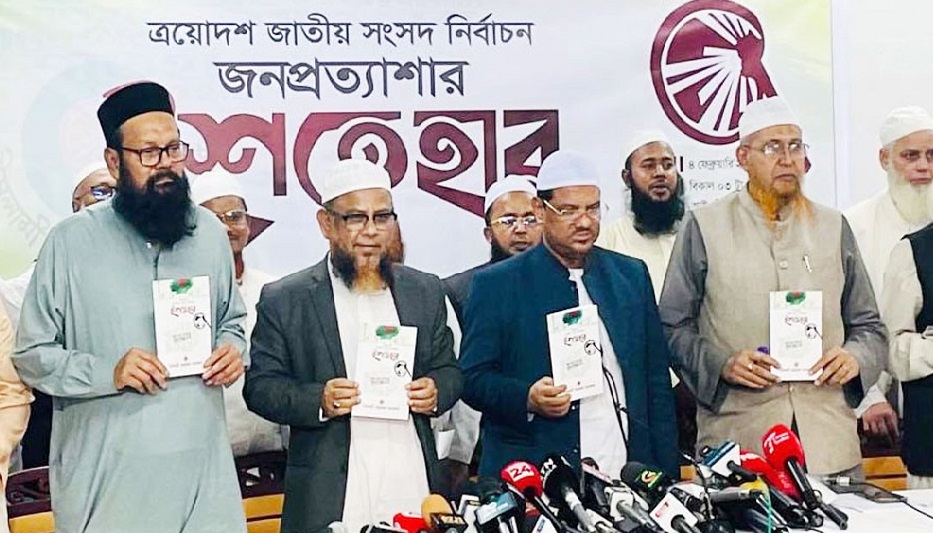 ইশতেহার ঘোষণা অনুষ্ঠানে ইসলামী আন্দোলন বাংলাদেশের শীর্ষ নেতারা উপস্থিত ছিলেন।