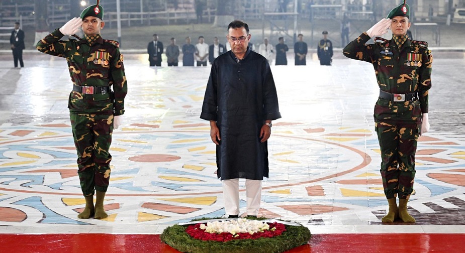 ঢাকা: একুশের প্রথম প্রহরে কেন্দ্রীয় শহীদ মিনারে ফুল দিয়ে ভাষার অধিকারের জন্য জীবন উৎসর্গ করা শহীদদের প্রতি শ্রদ্ধা জানিয়েছেন প্রধানমন্ত্রী তারেক রহমান। শুক্রবার রাত ১২টায় কেন্দ্রীয় শহীদ মিনারে প্রথমে ফুল দিয়ে প্রথমে ভাষা শহীদদের প্রতি শ্রদ্ধা নিবেদন করেন রাষ্ট্রপতি মো. সাহাবুদ্দিন। এরপর শ্রদ্ধা জানান তিনি। শ্রদ্ধা নিবেদনের পর ভাষা শহীদদের আত্মার মাগফেরাত কামনায় মোনাজাতে শরিক হন প্রধানমন্ত্রীসহ শহীদ মিনারে জড়ো হওয়া হাজারো মানুষ।