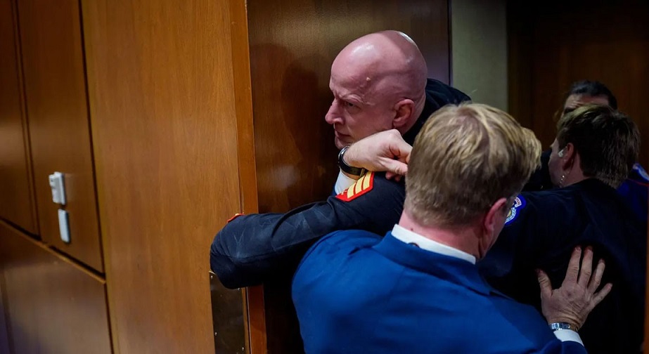 আন্তর্জাতিক ডেস্ক: ইরানের বিরুদ্ধে সামরিক অভিযান চালানোর সিদ্ধান্তের প্রতিবাদ জানিয়ে যুক্তরাষ্ট্রের কংগ্রেসে শুনানিকক্ষে বিক্ষোভ দেখান এক সাবেক মার্কিন মেরিন সেনা। পরে তাকে জোরপূর্বক কক্ষ থেকে বের করে দেয় নিরাপত্তাকর্মীরা। বিক্ষোভকারী ব্রায়ান ম্যাকগিনিস, যিনি আসন্ন নির্বাচনে গ্রিন পার্টির হয়ে সিনেটের একটি আসনে প্রতিদ্বন্দ্বিতা করছেন। শুনানিকক্ষে দাঁড়িয়ে তিনি চিৎকার করে বলেন, ‘ইসরায়েলের জন্য কেউ যুদ্ধ করতে চায় না। আরও পড়ুন ইরান ইস্যুতে জরুরি পদক্ষেপ কোরিয়ার ইরান ইস্যুতে জরুরি পদক্ষেপ কোরিয়ার ০৫ মার্চ, ২০২৬ ঘটনার সময় উপস্থিত একাধিক নিরাপত্তাকর্মী তাকে ধরে কক্ষের বাইরে নিয়ে যান। সিবিএস নিউজের সাংবাদিক অ্যালান হে সামাজিক মাধ্যমে প্রকাশিত একটি ভিডিওতে দেখা যায়, মন্টানা অঙ্গরাজ্যের সিনেটর টিম শিহি যিনি নিজেও একজন মার্কিন ভেটেরান ক্যাপিটল পুলিশের সদস্যদের ম্যাকগিনিসকে কক্ষ থেকে বের করে দিতে সহায়তা করছেন। আরও পড়ুন যুদ্ধ আর ১০ দিন স্থায়ী হলে যুক্তরাষ্ট্রের ক্ষেপণাস্ত্রের মজুত বিপজ্জনকভাবে কমে যেতে পারে যুদ্ধ আর ১০ দিন স্থায়ী হলে যুক্তরাষ্ট্রের ক্ষেপণাস্ত্রের মজুত বিপজ্জনকভাবে কমে যেতে পারে ০৪ মার্চ, ২০২৬ পরে সিবিএস নিউজকে দেওয়া প্রতিক্রিয়ায় টিম শিহি বলেন, ‘পরিস্থিতি শান্ত করতে এবং সহায়তা করার জন্যই আমি এগিয়ে গিয়েছিলাম।’ ঘটনাটি সামাজিক যোগাযোগমাধ্যমে ছড়িয়ে পড়ার পর তা নিয়ে ব্যাপক আলোচনা শুরু হয়েছে।