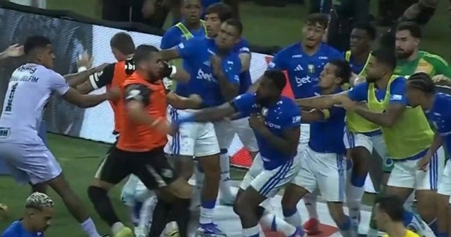 স্পোর্টস ডেস্ক: দক্ষিণ আমেরিকান ফুটবলে মাঠ বা গ্যালারি রণক্ষেত্রে পরিণত হওয়ার ঘটনা নতুন নয়, তবে ব্রাজিলে অনুষ্ঠিত ক্যাম্পেওনাতো মিনেইরো ফাইনালে সংঘটিত বিশাল সংঘর্ষ সব রেকর্ড ছাড়িয়ে গেছে। খেলোয়াড়রা একে অপরকে কিল-ঘুষি-লাথি মেরেছেন প্রায় মিনিটখানেক ধরে। যুদ্ধাংদেহী পরিবেশ কিছুটা শান্ত হওয়ার পর রেফারি ২৩ খেলোয়াড়কে লাল কার্ড দেখান, যা বিশ্বরেকর্ড। ক্রুজেইরো ও অ্যাতলেতিকো মিনেইরোর মধ্যে শিরোপার লড়াই চলছিল। ক্রুজেইরো এগিয়ে ছিল ১-০ গোলে। ইনজুরি টাইম শেষ হওয়ার মাত্র ৩০ সেকেন্ড আগে ক্রুজেইরোর স্ট্রাইকার ক্রিস্টিয়ান ও অ্যাতলেতিকো গোলকিপার এভারসনের মধ্যে সংঘর্ষ ঘটে। এভারসন কিছুটা বেশি সহিংস ছিলেন এবং ক্রিস্টিয়ানের বুকের ওপর চড়ে কয়েকবার আঘাত করেন। রেফারি পরিস্থিতি নিয়ন্ত্রণে আনতে চাইলেও, হঠাৎ ক্রুজেইরোর একজন খেলোয়াড় পেছন থেকে এভারসনকে ধাক্কা দেন। এরপর দুই দলের খেলোয়াড়রা একে অপরকে কিল-ঘুষি-লাথি মারতে শুরু করেন। মাঠে প্রবেশ করেন বেঞ্চের খেলোয়াড় ও সাপোর্ট স্টাফরাও। নিরাপত্তাকর্মী ও সামরিক পুলিশের হস্তক্ষেপে মাঠে শান্তি ফেরে। ম্যাচ প্রায় দশ মিনিট বন্ধ থাকে। পরে খেলা মার্চিং অর্ডার ছাড়া পুনরায় শুরু হয়। ম্যাচ শেষ হওয়ার পর মিডিয়া জানায়, ব্রাজিলের সাবেক তারকা হাল্কসহ অ্যাতলেতিকোর ১১ জন খেলোয়াড় এবং ক্রুজেইরোর ১২ খেলোয়াড় লাল কার্ড পান। মোট ২৩ খেলোয়াড় লাল কার্ড পেয়ে ১৯৫৪ সালে স্থাপিত ২২ লাল কার্ডের রেকর্ড ভেঙে গেছে।