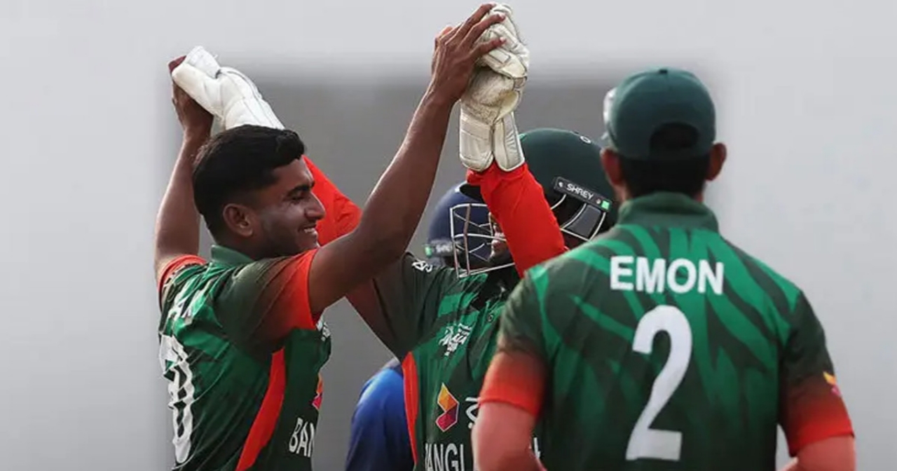 স্পোর্টস ডেস্ক: অনূর্ধ্ব-১৯ এশিয়া কাপে শ্রীলঙ্কাকে হারিয়ে গ্রুপ চ্যাম্পিয়ন হয়েছে বাংলাদেশ। লো স্কোরিং ম্যাচে হারের শঙ্কা থাকলেও দারুণ বোলিংয়ে ৩৯ রানের জয় তুলে নেয় যুব টাইগাররা।ম্যাচে বাংলাদেশ প্রথমে ব্যাট করে তুলনামূলক কম রান করলেও বোলারদের নিয়ন্ত্রিত আক্রমণের সামনে টিকতে পারেনি শ্রীলঙ্কা অনূর্ধ্ব-১৯ দল। পুরো দল অলআউট হয়ে যায় ১৮৬ রানে।এর ফলে বাংলাদেশ জয় পায় ৩৯ রানের ব্যবধানে। এই জয়ে ‘বি’ গ্রুপ থেকে চ্যাম্পিয়ন হিসেবেই সেমিফাইনালে উঠেছে বাংলাদেশ। শ্রীলঙ্কা হয়েছে গ্রুপের রানারআপ।গ্রুপ পর্বের ফলাফলের ভিত্তিতে সেমিফাইনালে বাংলাদেশ মুখোমুখি হবে ‘এ’ গ্রুপের রানারআপ পাকিস্তানের। অন্য সেমিফাইনালে ‘এ’ গ্রুপ চ্যাম্পিয়ন ভারত খেলবে শ্রীলঙ্কার বিপক্ষে। গ্রুপ চ্যাম্পিয়ন হওয়ায় সেমিফাইনালে ভারতের মুখোমুখি হওয়া এড়াতে পেরেছে বাংলাদেশ, যা টুর্নামেন্টের জন্য বাড়তি আত্মবিশ্বাস জোগাবে বলে মনে করছেন ক্রিকেট বিশ্লেষকরা।এরআগে ওপেনার জাওয়াদ আবরার শুরুতে ঝড় তুললেন। একটা সময় ২ উইকেটেই ১৫৬ রান তুলে ফেলেছিল বাংলাদেশ। সেখান থেকে হঠাৎ ধস। ২২ রানে নেই ৫ উইকেট। তারপর আবার ঘুরে দাঁড়ানো।টেনেটুনে শেষ পর্যন্ত ৪৬.৩ ওভার খেলে ২২৫ রানে অলআউট হয়েছে বাংলাদেশ। অনূর্ধ্ব-১৯ এশিয়া কাপে শ্রীলঙ্কার সামনে জয়ের লক্ষ্য ২২৬ রানের।ওপেনিং জুটিতে ৭৫ বলে ৮৪ রান তোলেন আবরার আর রিফাত বেগ। বরাবরের মতো ওপেনিংয়ে ঝড় তুললেও মাত্র ১ রানের জন্য ফিফটি করতে পারেননি আবরার। ৩৬ বলে ৪৯ রানের ইনিংসে ৪টি করে চার-ছক্কা হাঁকান এই ওপেনার।টপঅর্ডারের চার ব্যাটারই রান পেয়েছেন। রিফাত ৩৬, আজিজুল হাকিম তামিম ২৯ আর কালাম সিদ্দিকী করেন ৩২ রান। লঙ্কান অফস্পিনার কাভিজা গামেজ ধস নামান। তার ৪ উইকেটই ছিল বোল্ড।শেষদিকে ফরিদ হাসানের ৪০ বলে ১ চার, ২ ছক্কায় ২৯ আর এগার নম্বর ব্যাটার ইকবাল হোসেন ইমনের ৬ বলে ২ ছক্কায় ১২ রানে ভর করে লড়াকু পুঁজি পর্যন্ত গেছে বাংলাদেশের যুবারা।